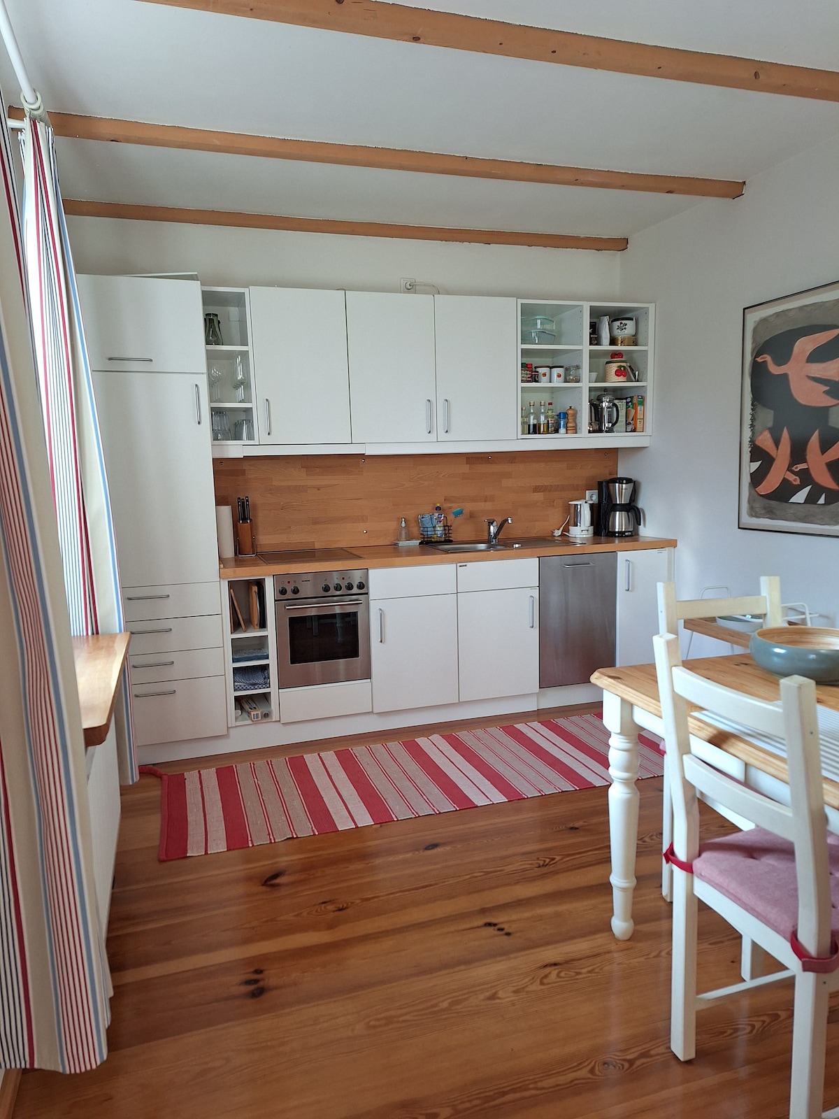 Liebevoll gestaltete Haushälfte mit eigenem Eingang und Gartenbereich – ruhig gelegen und umgeben von Natur. Auf rund 70m² erwarten dich zwei Schlafzimmer mit Doppelbetten, ein Bad mit Wanne und Dusche sowie ein gemütliches Wohnzimmer mit Essbereich. Die moderne Küche ist komplett ausgestattet mit Backofen, Geschirrspüler und Kühlschrank – ideal für Paare, Familien oder ruhesuchende Städter.