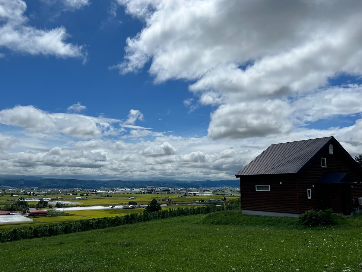 Scenic trailer house for adults who actively enjoy nature. It is a house surrounded by magnificent nature with a 360-degree panorama. It is a 52 square meter single-story house built in 2025. A great location, 15 minutes by car to Furano Ski Resort, which is said to have the best snow in Japan. Plenty of activities in spring, autumn and winter, such as hot springs, paragliding, rafting, fishing, mountain climbing, hot air ballooning, and more. You can park your car in front of you, so it's perfect for adults who want to be active from morning to night. Please enjoy the nature of Furano, not only skiing! It is a 5-minute walk from Furano station and easy access by train. Many railway fans love the train that runs through the vast Furano basin with Mt. Tokachi.