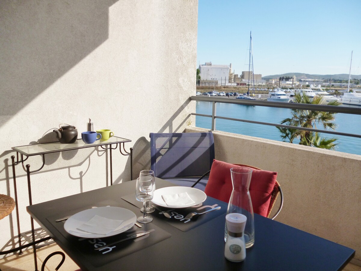 Pleasant view of the Pointe Courte Canal... Bright, quiet, high-rise studio (4th floor) in secure residence The TGV train station is a 3-minute walk and the city center is 7 minutes away. You will find amenities nearby (restaurants, theater, cinema, museums, art galleries, pharmacy...), bus line 200 m, oyster and shellfish tastings 300 m along the canal and the first beach is 10 minutes by bus. Free WiFi... linens and towels are provided