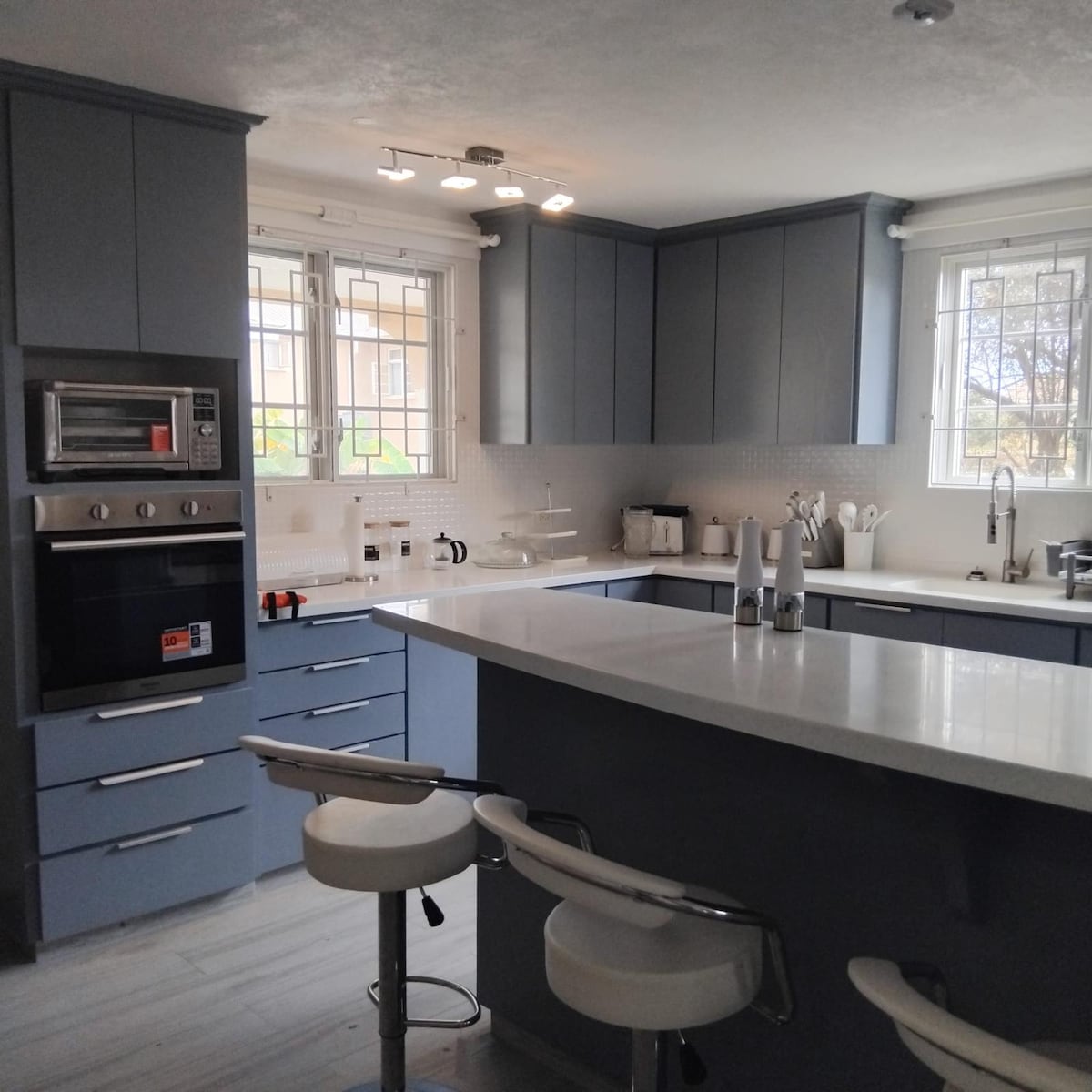 This is spacious and modern 2-bedroom, 3-bed, 2.5-bathroom townhouse in St. Philip. Just a short drive to airport, Six Roads shopping area for groceries and restaurants, beautiful beaches, and the famous Oistins. Each bedroom has A/C and a private patio with a third patio off the kitchen for outdoor lounging. Features include a fully equipped kitchen, keyless entry, open-plan living/dining, washer, Wi-Fi, and free parking. Ideal for couples, families, or business travelers.