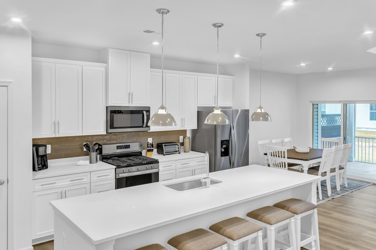 Sand, sun, and endless family fun await you and your loved ones at this newly built Millville vacation rental just a few miles away from iconic Bethany Beach! It is the perfect home for multi-generational guests, a few couples or a large family. Sitting in the quiet neighborhood of Bishop’s Landing community, this perfect beach retreat has all of the comforts needed to relax after sun filled days at the beach.