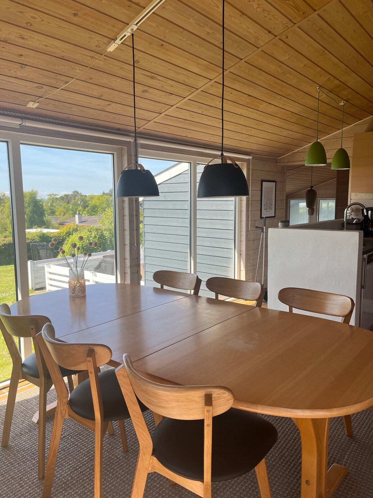 Located directly on Dyngby/Saxild Beach you will find this unique and newly renovated 60's cottage with a focus on creating an exclusive and cozy interior with beautiful surroundings and beach environment. The house is located 30 meters from the beach, so you can enjoy the outdoor areas and the large and beautiful wooden terrace in privacy. The house is 180m2 and provides plenty of space to enjoy both winter and summer seasons and has been completely modernized a few years ago.