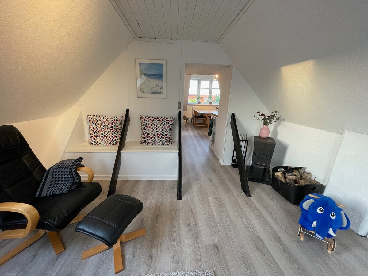 Minimum 2 nights - minimum 2 nights. Super location within walking distance of downtown, with dining, cafes and museums. Parking right at the door as well as supermarket, bakery and gas station. There is a private terrace with garden furniture - both covered and for sun, barbecue and fireplace. Everything is newly renovated. Note: Linen packs DKK 50 per person (consisting of bed linen, 4 towels, bath mat, tea towels, etc.) are mandatory. The home is not suitable for children or people with walking difficulties.
