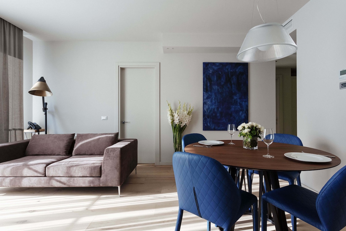 Accommodation includes: - breakfast for two residents in the Italian restaurant Elissa - SPA visit for two hours at any time (advance booking required) - 24-hour front desk - Wi-Fi and parking - 24-hour room service Features of the apartment: - Comfortable room with an area of 65 sq.m. - 1 living room, 2 bedrooms, 1 bathroom - dining area with modern kitchen - Italian design with elements of contemporary art - Mini-bar, bathrobes - restaurant and bar on site