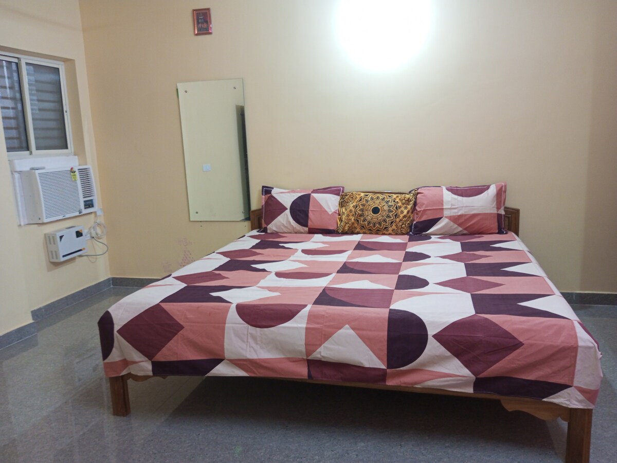 Family friendly 1 BHK type with – Hall (living and Kitchenette with sofa-cum-bed) plus a bedroom with a queen-size bed and attached bath. Suitable for 4 adults. Privacy, security and calmness at the heart of Jagannath Puri just 300 M walking distance to Jagannath temple. Fitted with WC, Geyser and 1.5 ton A/C. with gas, cookwares and necessary sleeping systems for a comfortable stay for 4 adult / a family.