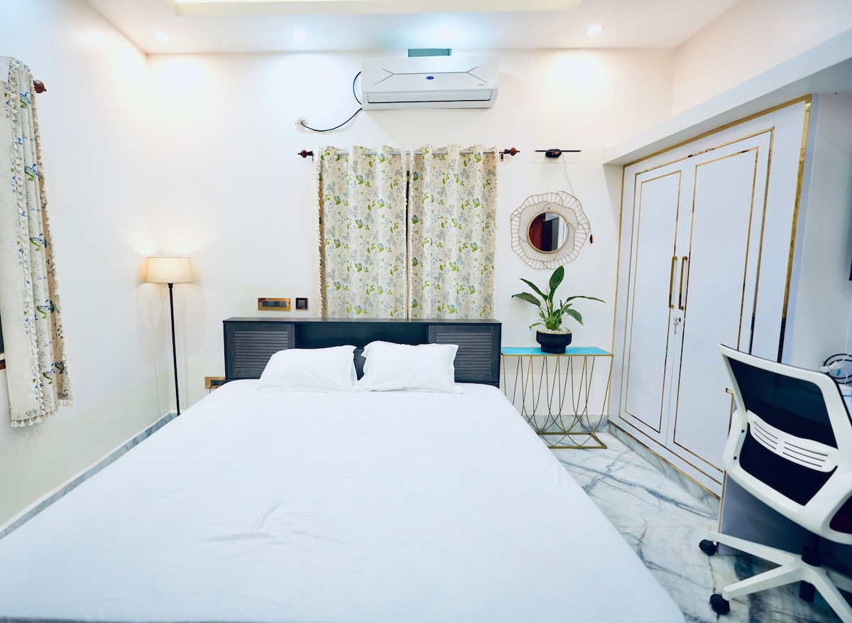 Enjoy a bright, airy, and spacious private room with an attached washroom, perfect for a comfortable and relaxing stay. This cozy retreat is bathed in natural daylight all day, creating a refreshing and peaceful ambiance. Key Features: ✔ Private room with attached washroom ✔ Air-conditioned comfort for a restful stay ✔ High-speed WiFi to stay connected ✔ Spacious & well-ventilated with ample natural light ✔ Ideal for small families seeking a home-like experience