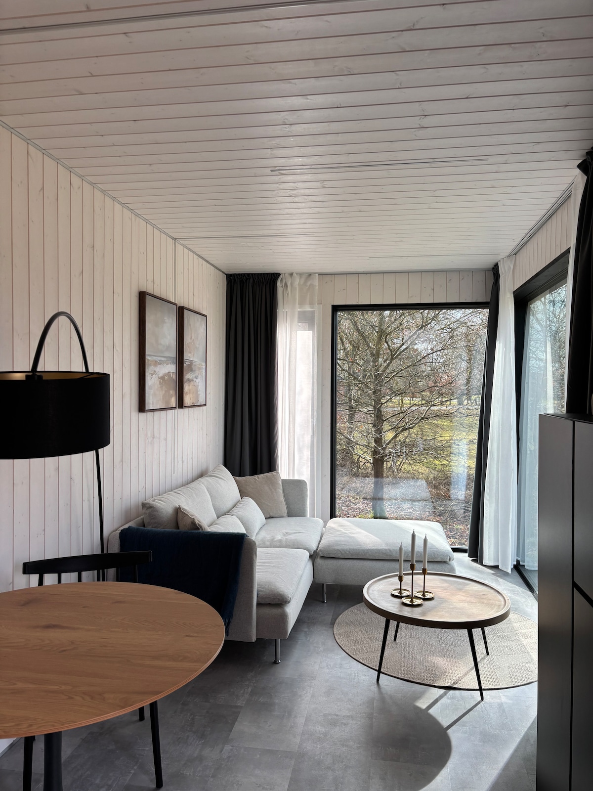 In the middle of the Lower Saxony Elbe Valley biosphere reserve, a lovingly designed tiny house awaits you, inviting you to linger with its personal touch and well thought-out details. Only a ten-minute walk from the idyllic Lake Sumter, it combines natural living with modern comfort. The bright living room has been designed with natural materials and large windows create a harmonious connection to the surrounding nature, so that you immediately feel at home.