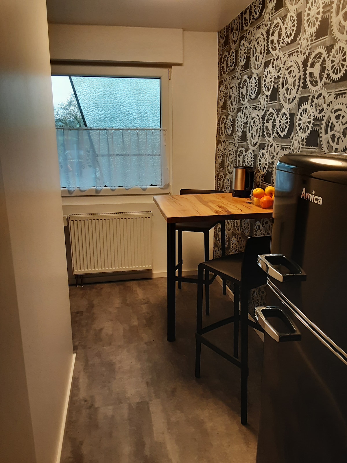 Modern studio with high-quality, 1.80 meter wide box spring bed, fully equipped kitchenette and bathroom in a small boarding house in Kriftel near Frankfurt. Good connection to Frankfurt and the airport. An extra bed for a third person is possible.