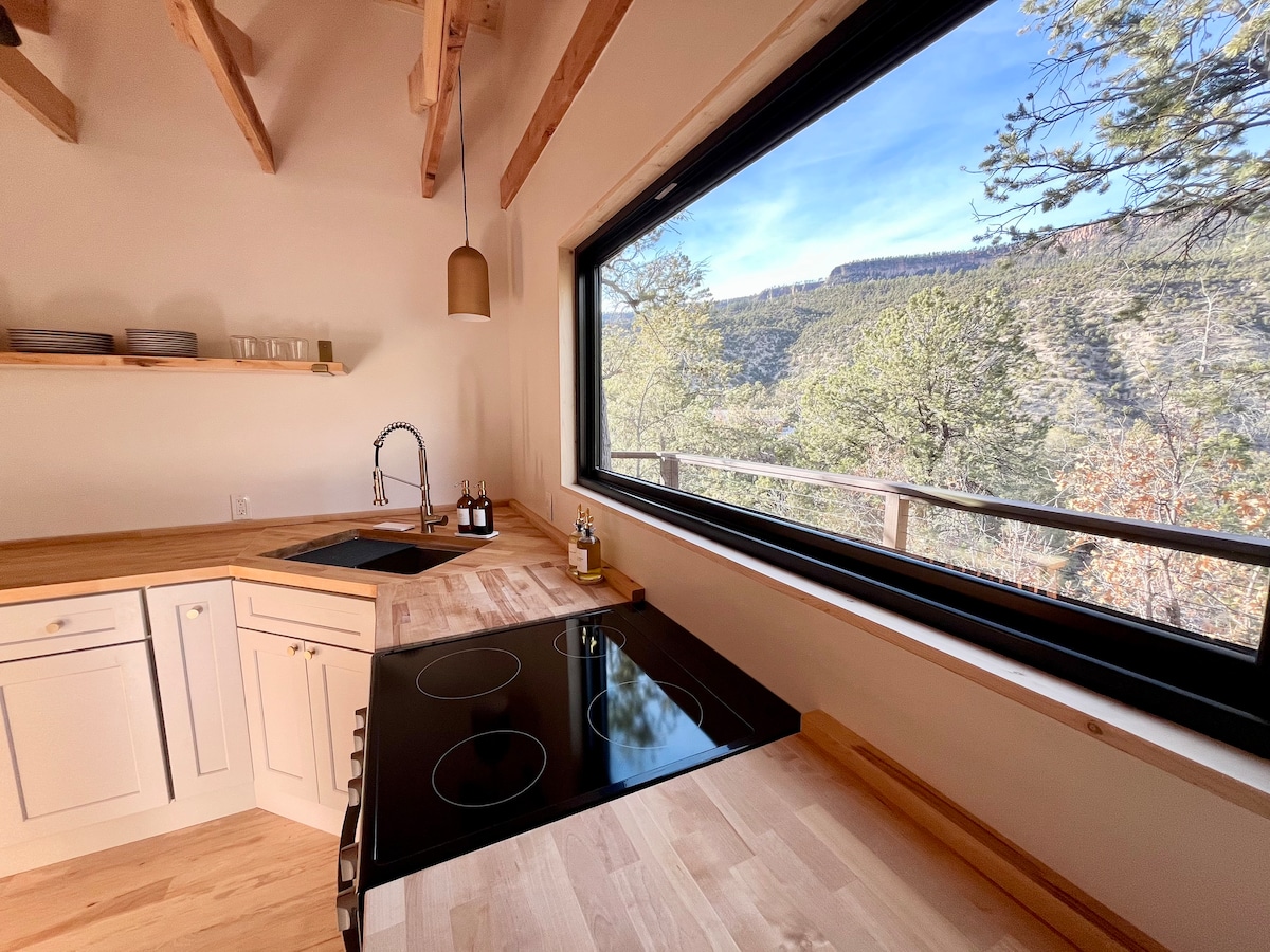 Plan your vacation at this cute little cabin! The kitchen is furnished with a refrigerator/freezer, oven/stove, microwave, toaster, coffee pot and more. There is A/C and heating as well as a smart TV and Wifi so you can have a comfortable, relaxing, and productive stay! On top of all that, we are centrally located between Los Alamos, Santa Fe, Pojoaque and Taos so you can easily visit some of our most amazing tourist spots!
