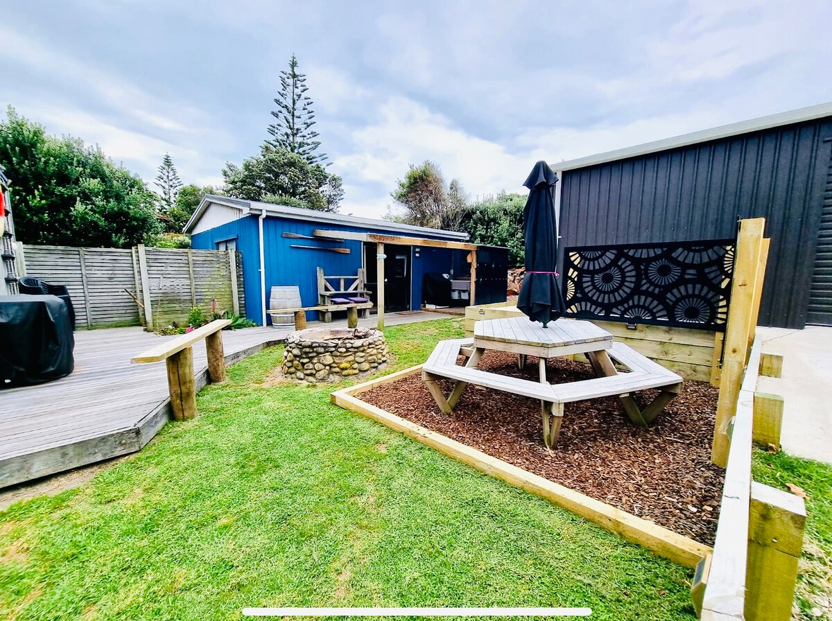 3-bedroom holiday home at the quiet end of Ōhope Beach, located 200–300m past the Top 10 Holiday Park. Recently renovated with open-plan living, this home is just minutes from the boat ramp, golf course, and harbour—and only metres from the beach! Three double bedrooms with queen-size beds and wardrobes. Freshly renovated bathroom plus an extra toilet. Fully equipped with Wi-Fi, kitchen supplies, laundry, air conditioning and room to park your boat.