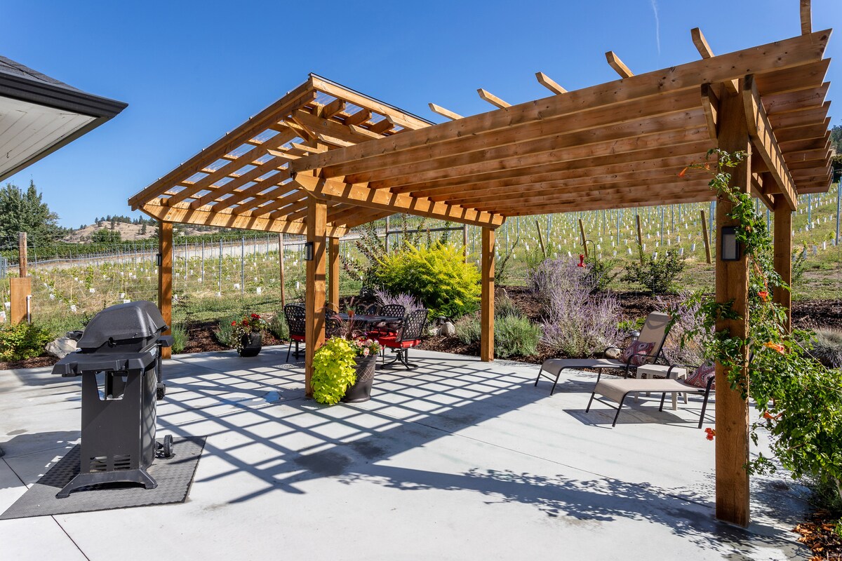 A view of Okanagan Lake and rolling grapevines stretching the length of Naramata Bench, makes some guests exclaim "It's like we're in Europe!" Your garden suite is super spacious, with a large bedroom, bathroom and kitchen area. Walk (or drive) to several wineries, hiking and biking trails. Located less than 10 minutes from downtown Penticton, and 15 minutes from Naramata, you'll have all the conveniences of both wine country and city life!