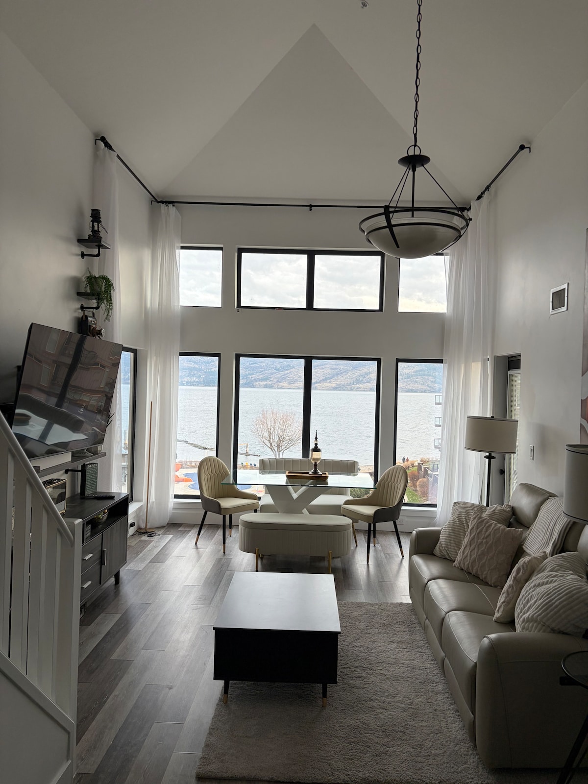 Okanagan waterfront at it's finest! Private beach, pool, and close to award winning wineries and golf courses! This beautiful end unit is spacious and stylish and puts you into instant relax mode. It sleeps 9 people, has Wifi, and is close to everything including the grocery store. Great for both kids and adults! Resort style fun where you can stay to relax or adventure out into the area to enjoy everything the Okanagan has to offer!