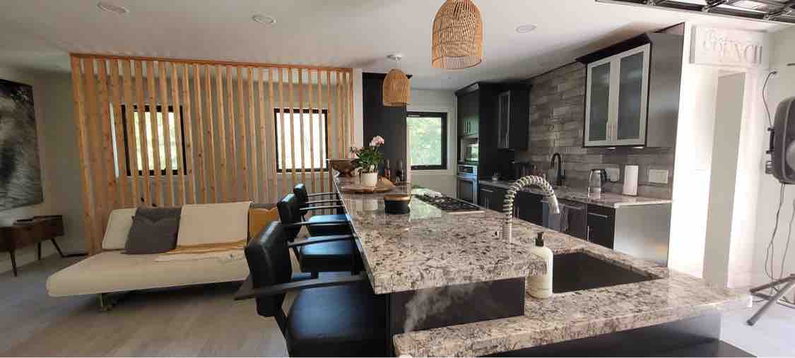 Located in Kelowna’s peaceful Upper Mission, just 3 mins from Summerhill Winery and 20 mins to Downtown. Enjoy a private lakeview suite with separate entrance, exclusively for your group (no shared areas). It offers 2 bedrooms with queen beds, a new bathroom, and a spacious living room with TV, sofa bed, and dining table. No full kitchen—microwave, fridge, and coffee maker provided (no stove/dishwasher). Outdoors: Hot Tub, BBQ, and stunning lake sunsets. Quiet hours after 10 PM.