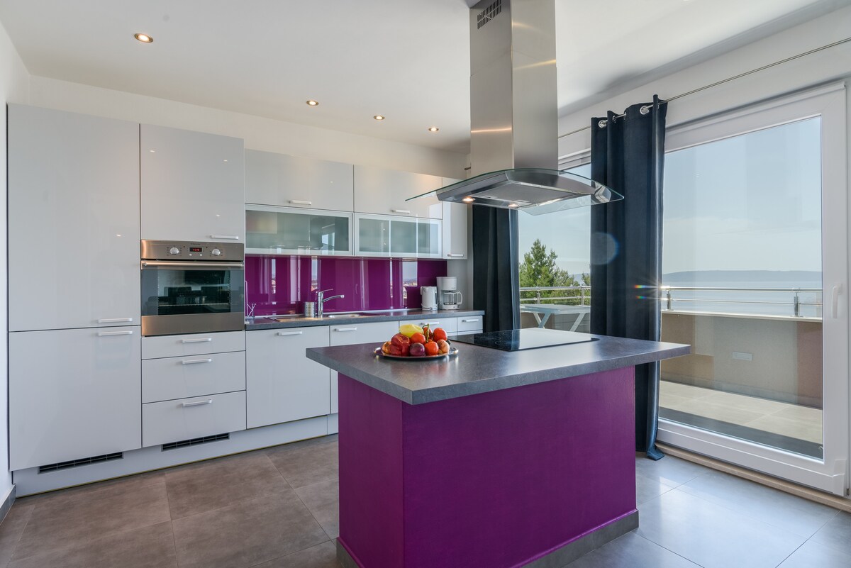 Our modern and new apartment have two bedrooms and teracce with an amazing view will leave you speachless! It comfortably fits 4 plus a child and is located in a quiet street, only 2 min walk from main beach in Okrug. Restaurants, supermarkets, ATM is 2 min walk. Have a nice stay at our apartment.