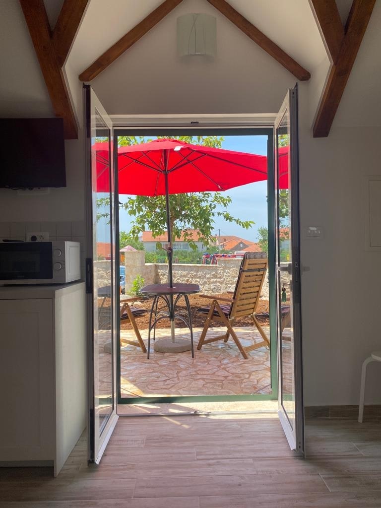 The apartment was newly built, 2021.The apartment is in a block,connected to a family house.. It has two floors with a separate entrance. Guests can use a part of the garden in front of the apartment with a table and chairs. Atractive beach with plenty things to do is 2 minutes . The apartment you can enjoy and relax, and if you want any other activity ,its near by .Trogir is a 15 minute walk and there is a boat every 10 minutes .Enjoy the sun and the Adriatic sea in an attractive location ''.