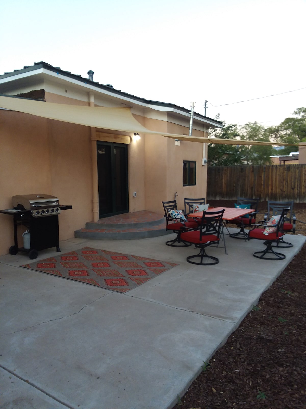 Our guest house is behind the main house in a lovely and historic downtown Albuquerque neighborhood. There are many seating areas to enjoy in the spacious backyard. We are located within walking distance of Slow Burn Coffee, Rumor Pizza, Golden Crown Panaderia, Marble Brewery, Tiguex Park, Old Town, Explora, the local famer’s market, Lowes Grocery Store, and Civic Plaza.