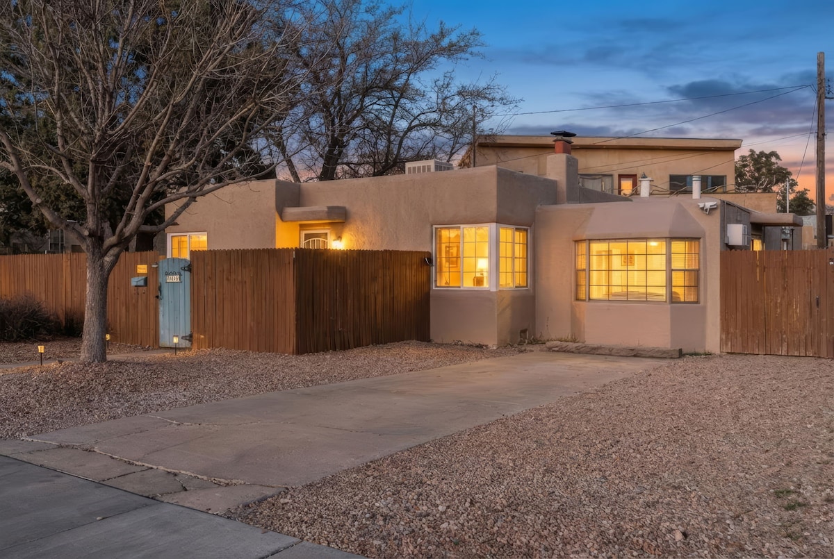 Experience the enchantment of Old-Town Albuquerque in this 1926 adobe home located a short walk from the historic Old Town Plaza. Old-world charm with modern comforts like AC, fully stocked kitchen, laundry room, and new Serta ultra-plush mattresses. Located within easy walking distance to Albuquerque's unique museums, parks, and restaurants. Private gated driveway and backyard perfect for dogs. Designed as a retreat for families, as well as the perfect getaway for vacation and work travelers.