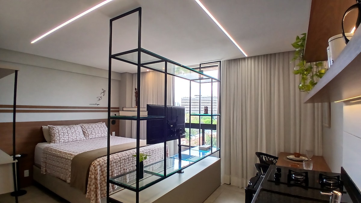 This unique place has a style all its own. Perfect for those who are going to work or enjoy a few days in Recife. Great location, close to the beach, the main Shopping malls, restaurants, bakeries, cafes, etc. Our apartment has a comfortable queen-size bed and an auxiliary bed. Premium bed linens. 50" TV. Internet. Well-equipped kitchen. A comfortable table for meals or work. Building with parking, laundry, coworking, gourmet space, swimming pool, whirlpool, fitness center.