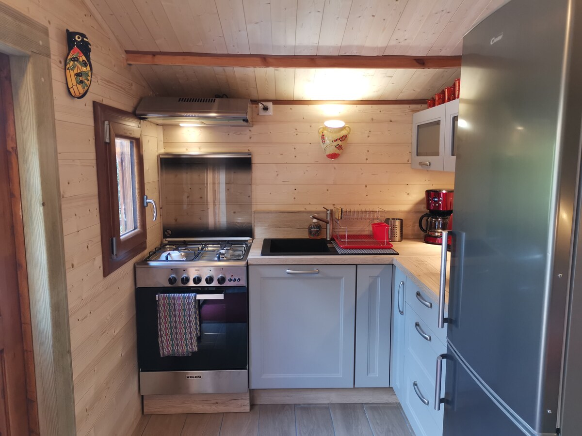Chalet in legno accogliente su terreno privato con vista mare mozzafiato, ideale per una fuga romantica o un soggiorno tranquillo. Dispone di letto matrimoniale, divano letto per bambino (1,70 m), bagno moderno e angolo cottura attrezzato. All’esterno, spazio living con barbecue in pietra e campo da bocce. Ambiente intimo e rigenerante. Terreno completamente recintato, perfetto per garantire privacy e per soggiorni con animali.