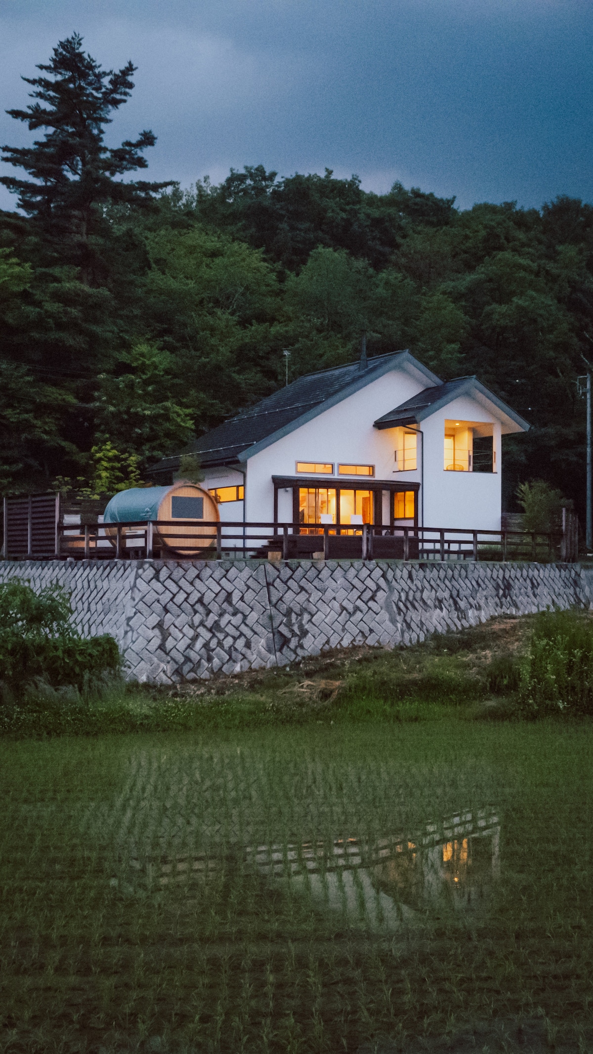 Enjoy a stay in a private villa surrounded by countryside and woodland, as if you were living in a movie. This is a house filled with the tranquility and openness of Azumino, which was also the setting for the movie "Side by Side: The Person Next Door" starring Kentaro Sakaguchi. In the spacious garden, you can enjoy BBQs and campfires freely, and in the new, fully private barrel sauna built in 2024, you can experience "Totono" for both mind and body. The kitchen is fully equipped with cookware and dishes, and we recommend cooking with local ingredients. Outside the window, the scenery of the countryside and the village spreads out, changing its appearance with the seasons. Enjoy a special time away from everyday life.