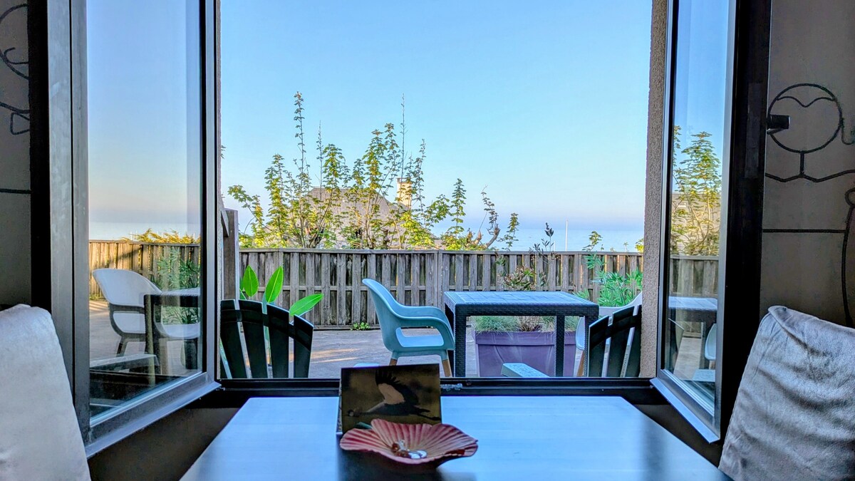 "UNE TERRASSE SUR LA MER" welcomes you to Port-en-Bessin, a very active fishing port in Calvados, nicknamed by Françoise Sagan: "The Normandy Saint-Tropez" This authentic fisherman's house (18th century) is quietly located in the first alley of the old port. On foot, you can walk to one of its many restaurants unless you prefer to go directly to the fish market located less than 100 meters away and come back for lunch on its exceptional terrace.