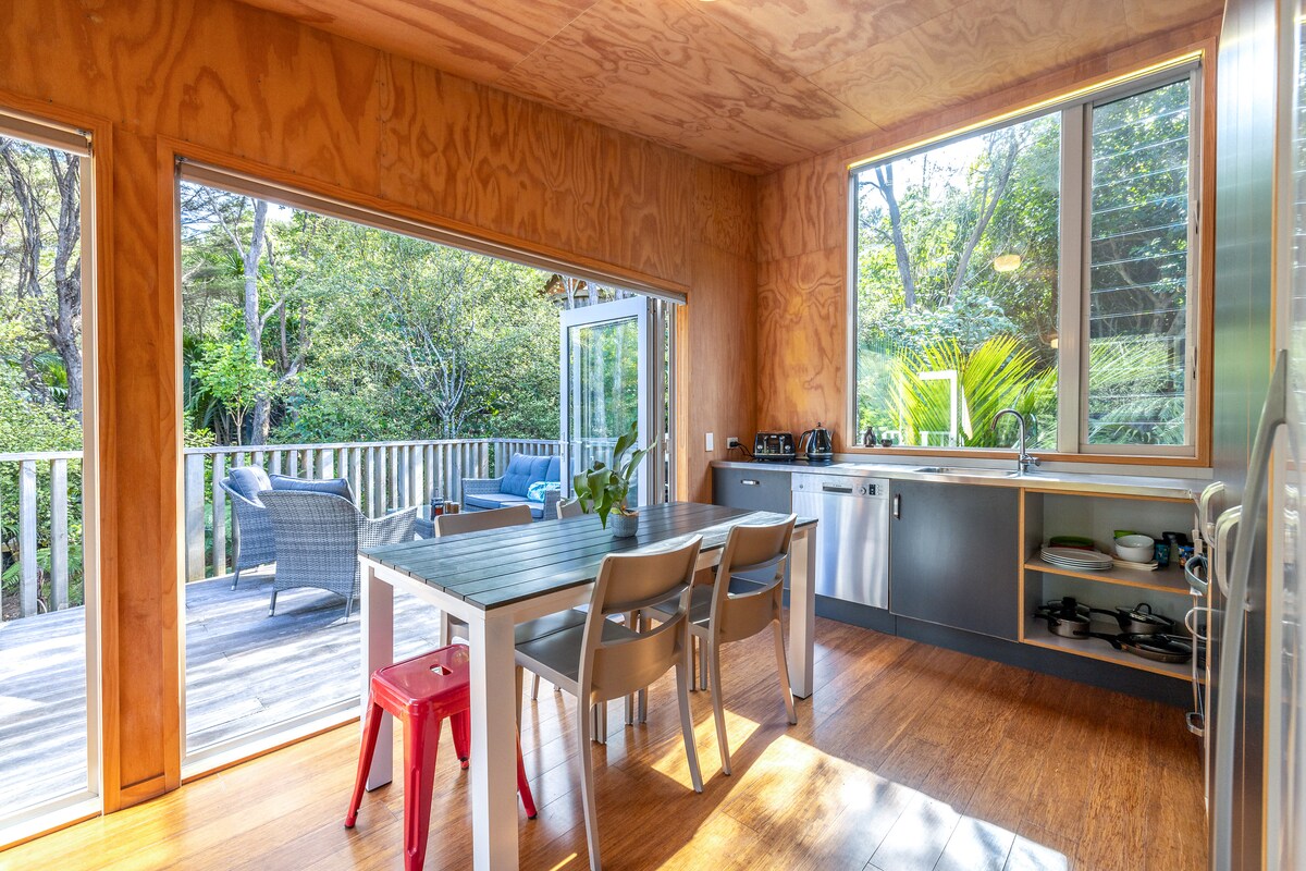 You'll instantly fall head over heels for Lover's Point. The moment you arrive at the stunning clifftop cabin, every way you look, the views, quite simply, take your breath away. Standing on the deck, be mesmerised by uninterrupted vistas of the Coromandel, The Noises, Oneroa Bay & even as far out as Great Barrier Island. Step inside the cabin, & you continue to be intimately connected to the views. Staying at Lover's Point, you're on top of the world, yet a world away from it all.