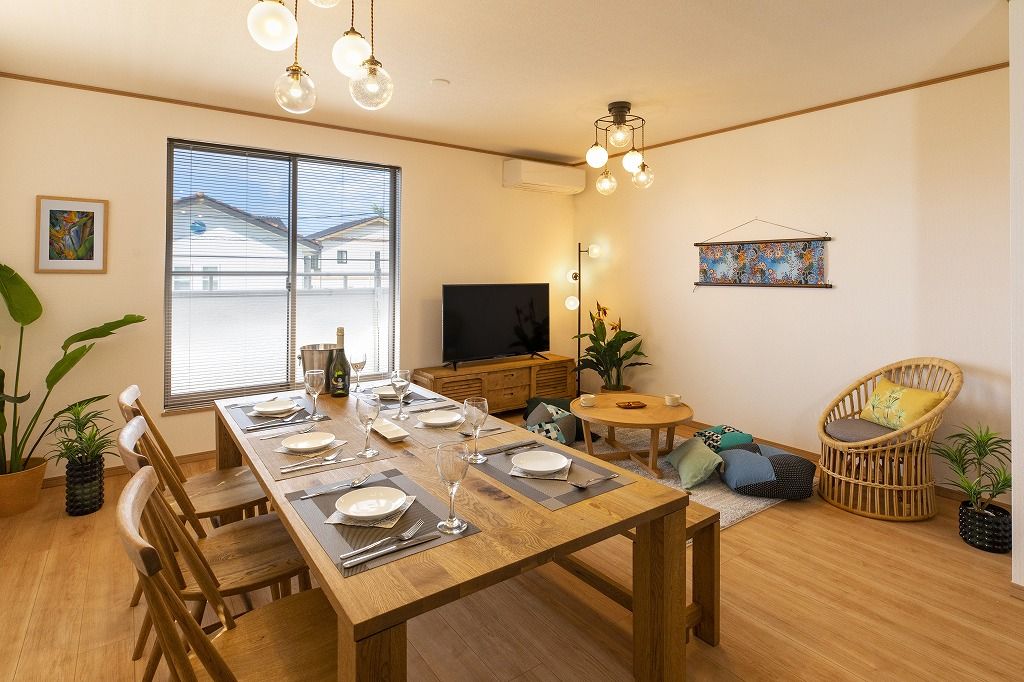 夕日を望む宇座ビーチ徒歩8分の宿 最大13名宿泊可の広々貸切戸建て 駐車場3台 3ベッドルーム