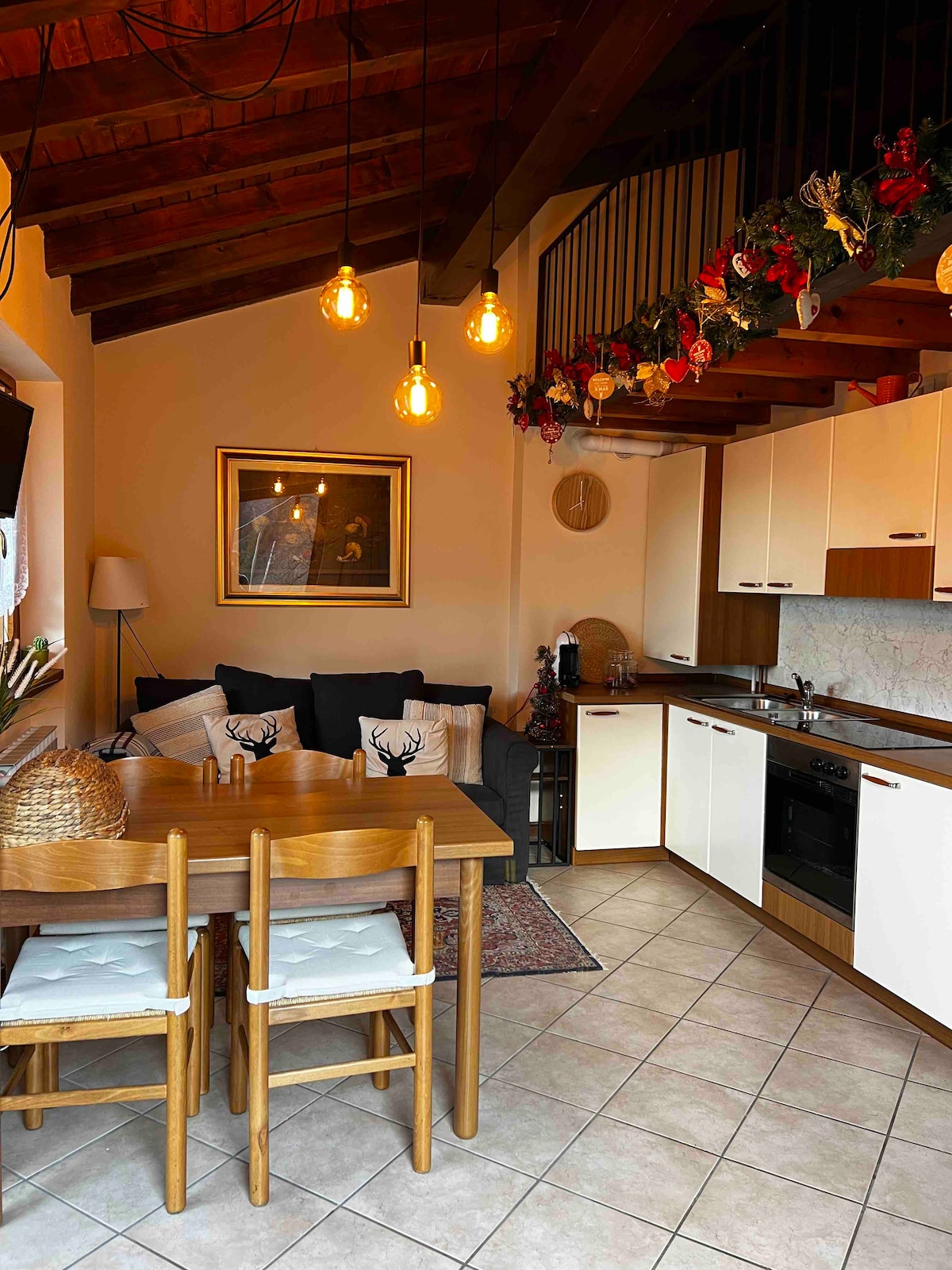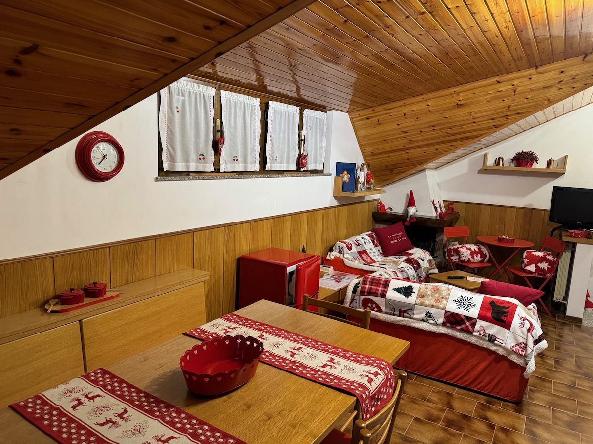 National Identification Code (CIN): IT016149C25Z2NMUQ5 You will stay in a typical mountain house covered in wood and surrounded by the greenery of the Seriana valley. Attic apartment with large balcony, living room with kitchen and sofa bed, bedroom and bathroom with shower and washing machine, located on the second and last floor (WITHOUT elevator) of a quiet condominium with large garden for free use of the condominiums. Furry friends are welcome!