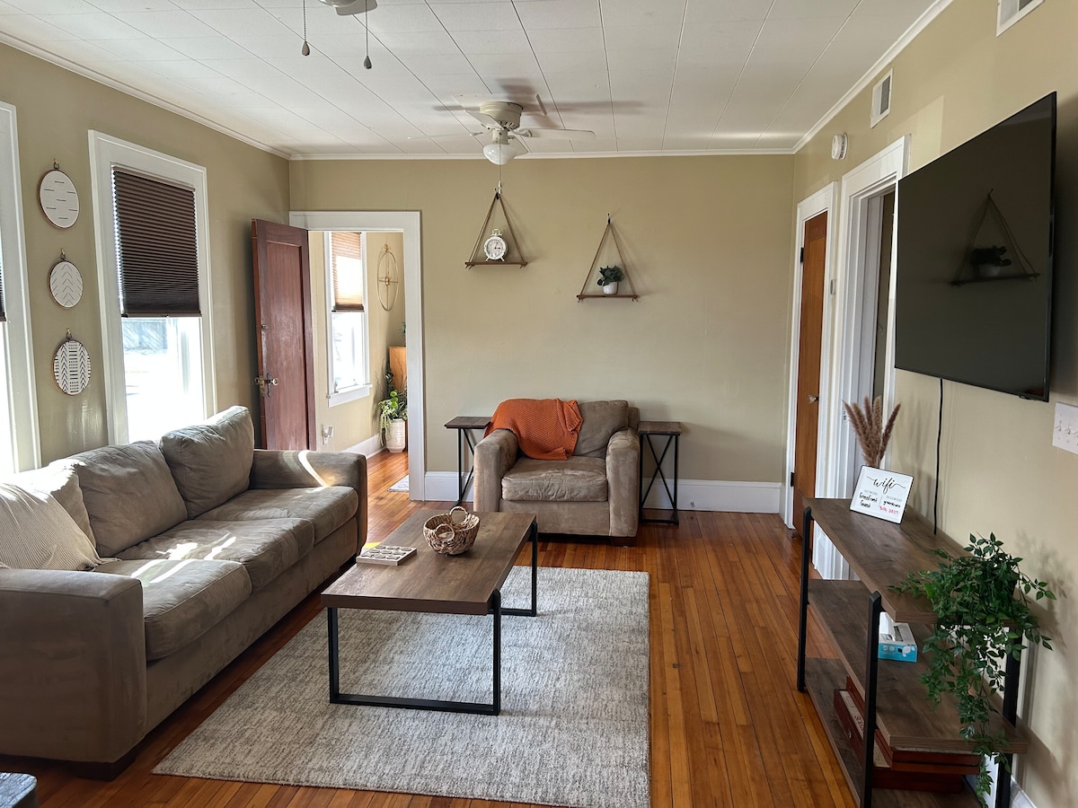 This suite is a newly remodeled wing of an old Castle street mansion. This fresh yet classic apartment sleeps 4 adults comfortably, but will accommodate up to 5. The primary suite includes a queen bed with plenty of pillows and moody lighting, along with a vanity. The second bedroom Has a cozy full/double daybed with twin trundle. The Kitchen and Bathroom are newly remodeled with Vintage touches, resulting in a fun yet sophisticated atmosphere.