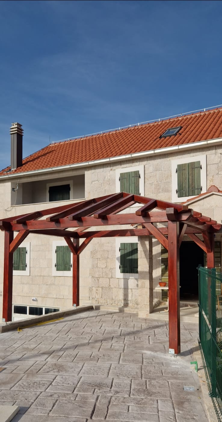 This beautiful three bedroom holiday home with heated pool is situated in municipality Lovreć in Split Dalmatia county. The wider area of Split county were inhabited in prehistoric times, as evidenced by numerous settlements and forts. Makarska Riviera is 30 km distant, while Split is 55 km away. Two natural phenomena Red and Blue Lake in Imotski are 20 km away. The holy sanctuary of Medjugorje is 95 km away.