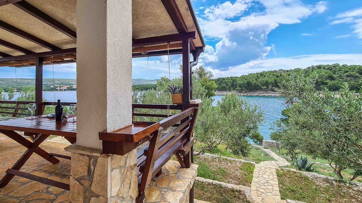 The house is located on a large estate surrounded with olive trees. Far enough away from the neighbors it provides peace and quiet,about 70m away from the own beach and has spectacular seaview all day long.It is 1.5km away from Milna and the road is part tarmac part gravel road. The house have plenty of room,equipt with evrything you need (modern kitchen,new toilets,full size beds,air condition,bbq),clean and nice.The hot tub(yacuzi) placed next to the house brings you pleasure and relaxing.