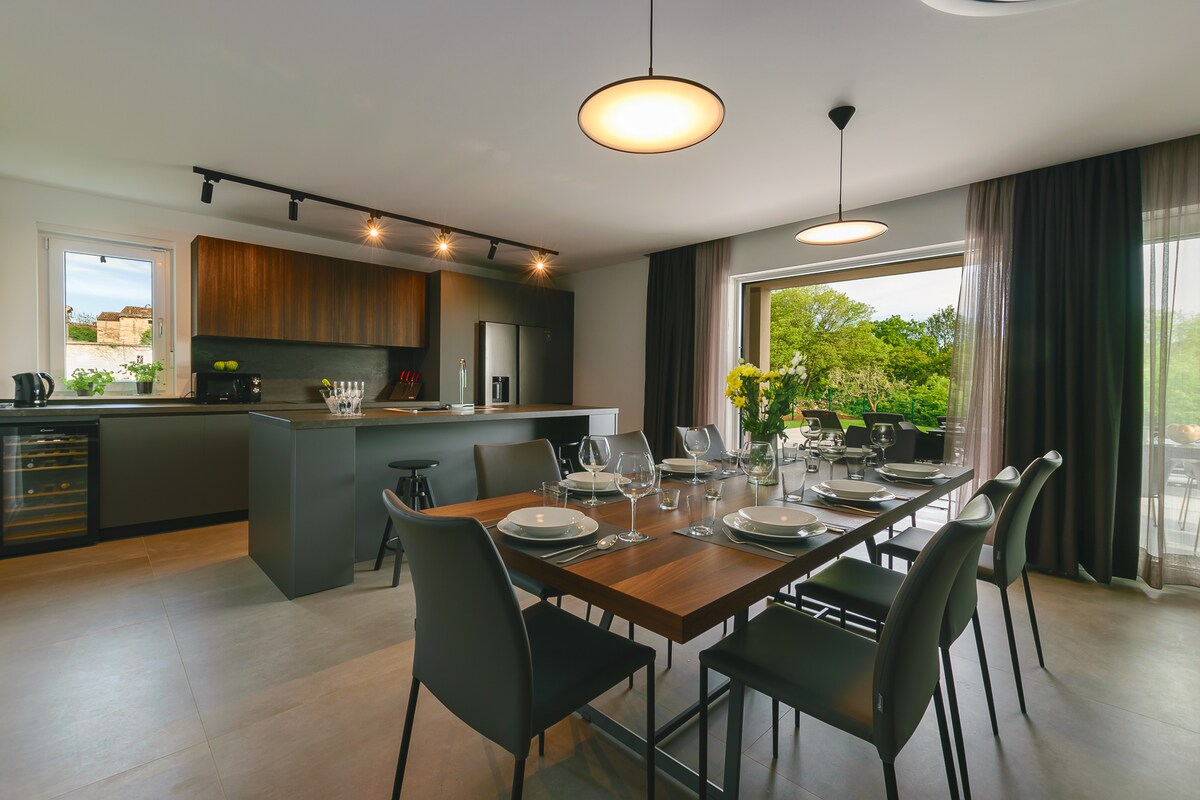 The location of this villa provides an excellent balance of peace and privacy. Away from the city bustle, while still close enough to famous tourist destinations on the coast. The nearest coastal towns are only a short drive from the villa (15km). From Fažana, it is possible to take a boat trip to the Brijuni Park. You can visit central Istria to enjoy the beautiful views and taste Istrian delicacies prosciutto fuže and other specialties. Visit Pula, the Roman amphitheater, the beautiful Rovinj, the castle in Savičenta.