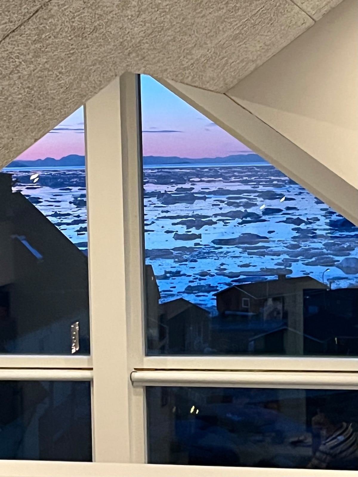 Hus i Ilulissat – beliggende i første række til isfjorden med en helt enestående udsigt over de majestætiske isfjelde. Her bor du tæt på naturen med panoramaudsigt direkte fra boligen, hvor lyset, stilheden og det arktiske landskab skaber en helt særlig atmosfære. Dette er en unik placering, som kun få boliger i Ilulissat kan tilbyde. Boligen ligger i rolige omgivelser, hvor du virkelig kan nyde naturen, men samtidig med nem adgang til byen og områdets mange oplevelser.