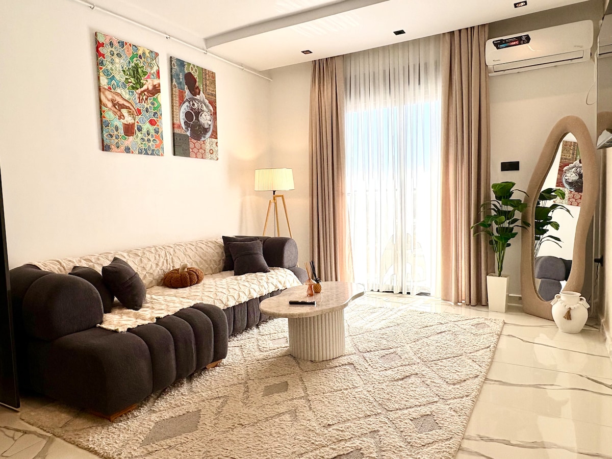 Bright two-bedroom apartment in Akid Lotfi with a balcony and sea view, ideal for couples, families, and business travelers. The apartment features two comfortable bedrooms, a modern living room, fast Wi-Fi, air conditioning, a fully equipped kitchen, and self check-in. Located in a quiet residence with free parking. Close to cafes, restaurants, beaches, and shops. Perfect for a comfortable stay in Oran.