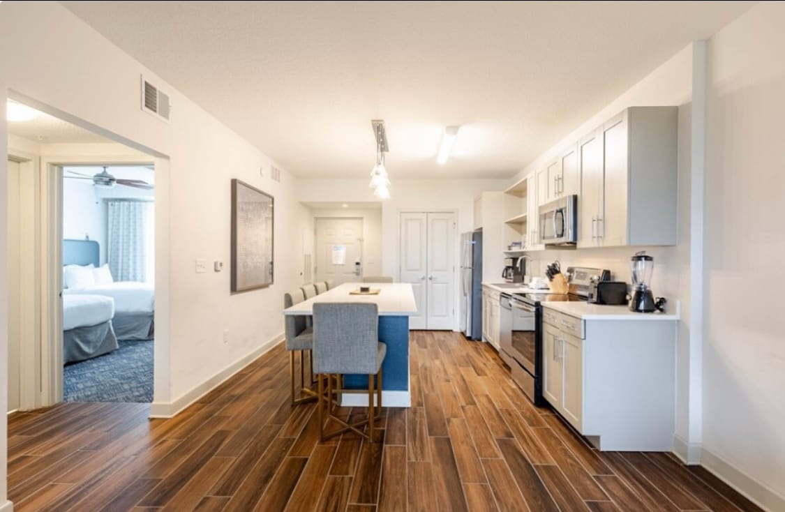 Stay in the center of the action in this one-of-a-kind place, just 10 min from Universal and Outlets. Disney is 25 min, location is just perfect for great places, entertainment, shopping and dinner, you can fond anything on a walking distance. Fully furnished and fully equipped kitchenet. Amenities: refreshing and heated pool, a pool sided bar, gym and spa tub. Wireless Internet Featured amenities include a business center, keyless check-out and check-in. Free self parking is available onsite.