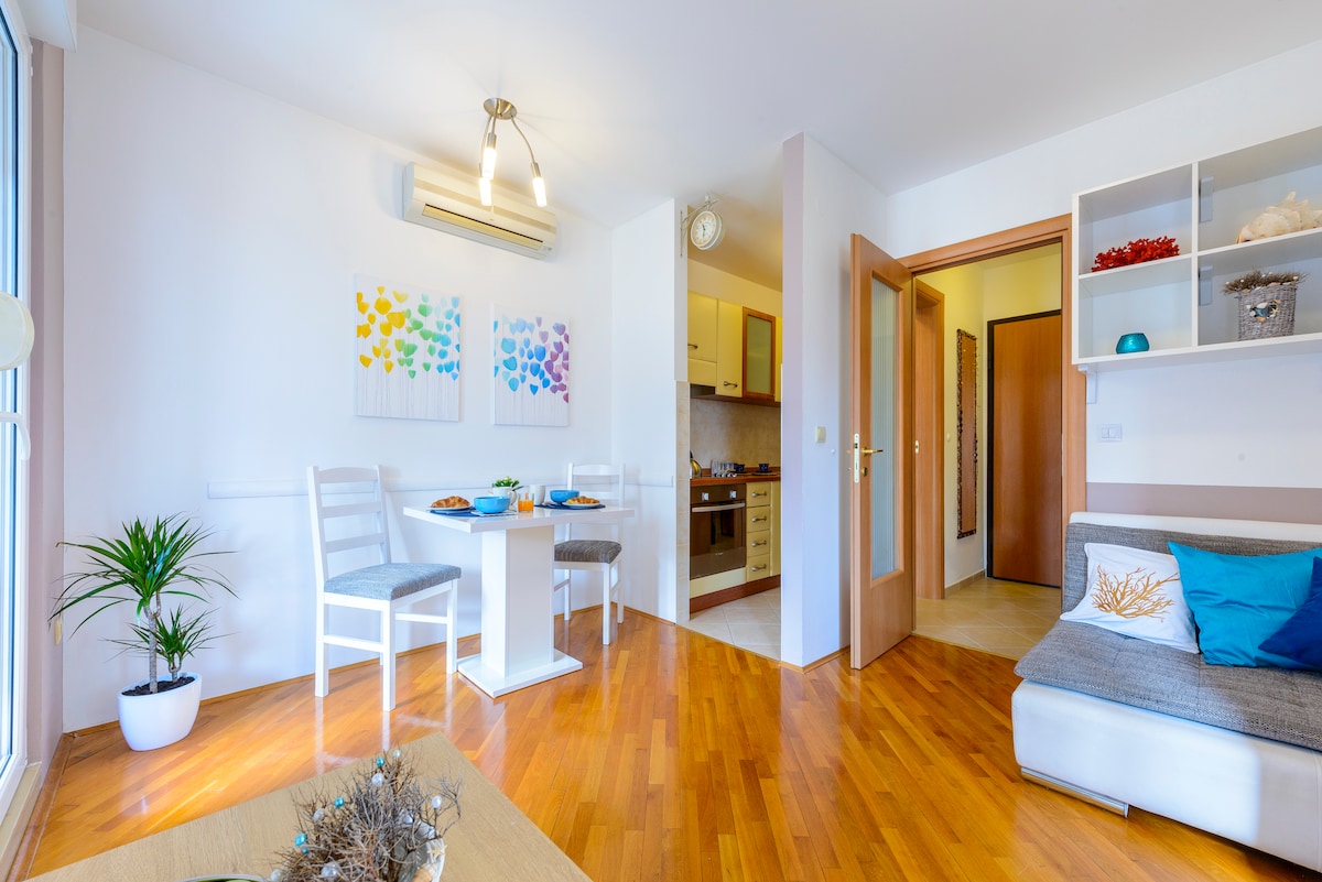 This lovely one bedroom apartment has everything you need. It is close to many wonderful beaches and a newly opened cinema, grocery shop. Bakery and pizzeria are right across the street, in the Dvori Lapad complex. The apartment is separated from the main house on 1st floor. There is a kitchen, dining room, bathroom, double bedroom, and a terrace. The apartment is equipped with air conditioning, TV and wireless internet.