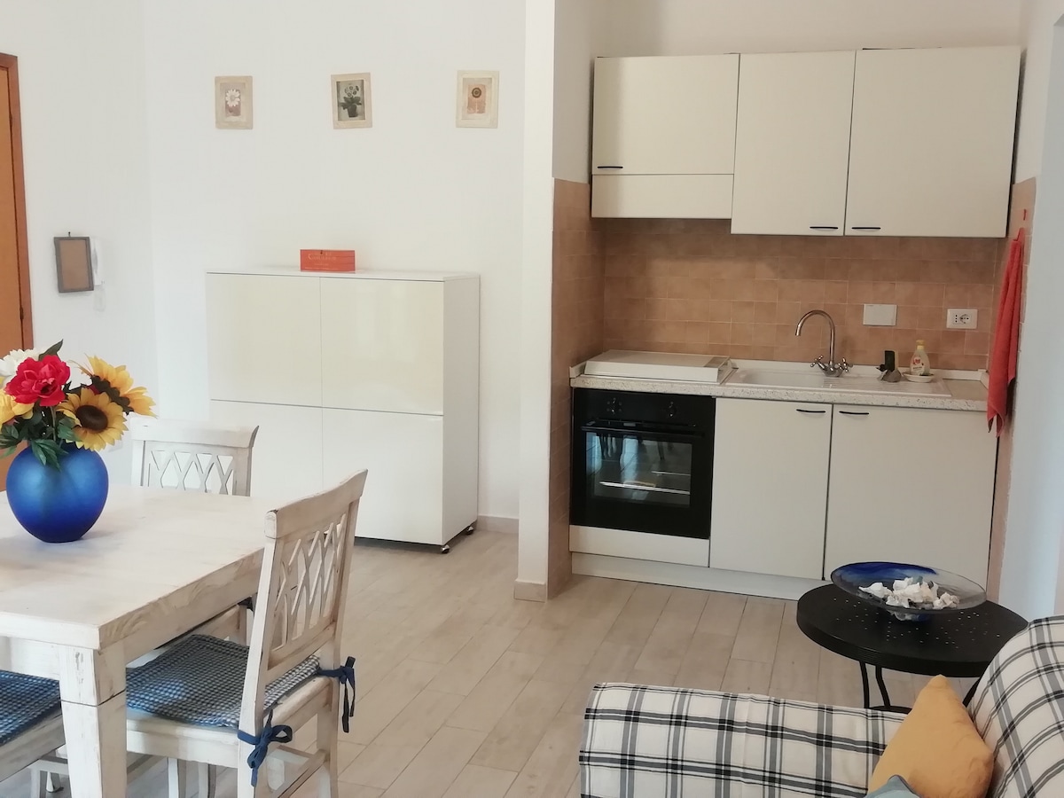 Apartment with independent access and reserved parking space in a private condominium courtyard. The apartment has a large kitchen, living room with double sofa bed, bathroom and bedroom. 200 meters from the train station and a stone's throw from the bike path, close to all the main services (pharmacy, supermarket, bar, tobacco shop) and 3 kilometers from the historic center and 5 km from the renowned Feniglia beach.