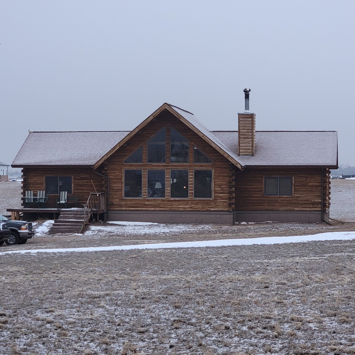 This is a great cabin to get away but is still close to town. It is spacious and sleeps eight people. It has room to run as well as be close to restaurants, small town shopping, and a peaceful ranching life. There is grazing livestock on the property. a country setting with small town 2 miles away. This is the two top levels of the cabin. The basement apartment is a private residence of the owner.