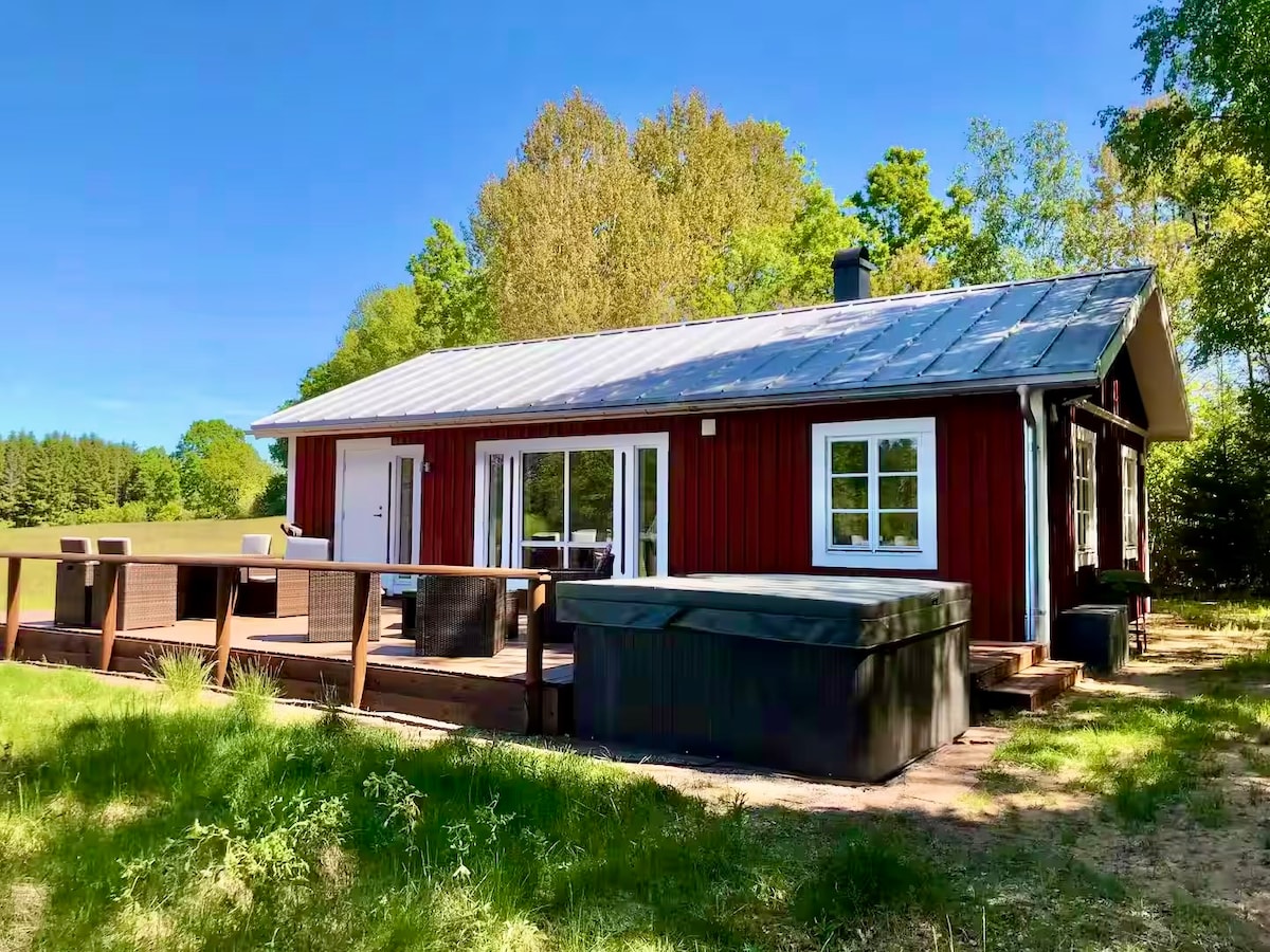 A cozy cottage placed close to forest, meadows and hiking areas. A large plot of land with lush seating, lawn for play, sunny locations and with a hot tub to enjoy under the bare sky. Access to hot tub, free parking, barbecue and close to many lovely destinations either by bike or car. Walking distance to Grytåsa hiking area. Cycling distance to the golf course, swimming at the quarry or Rya church ruins.