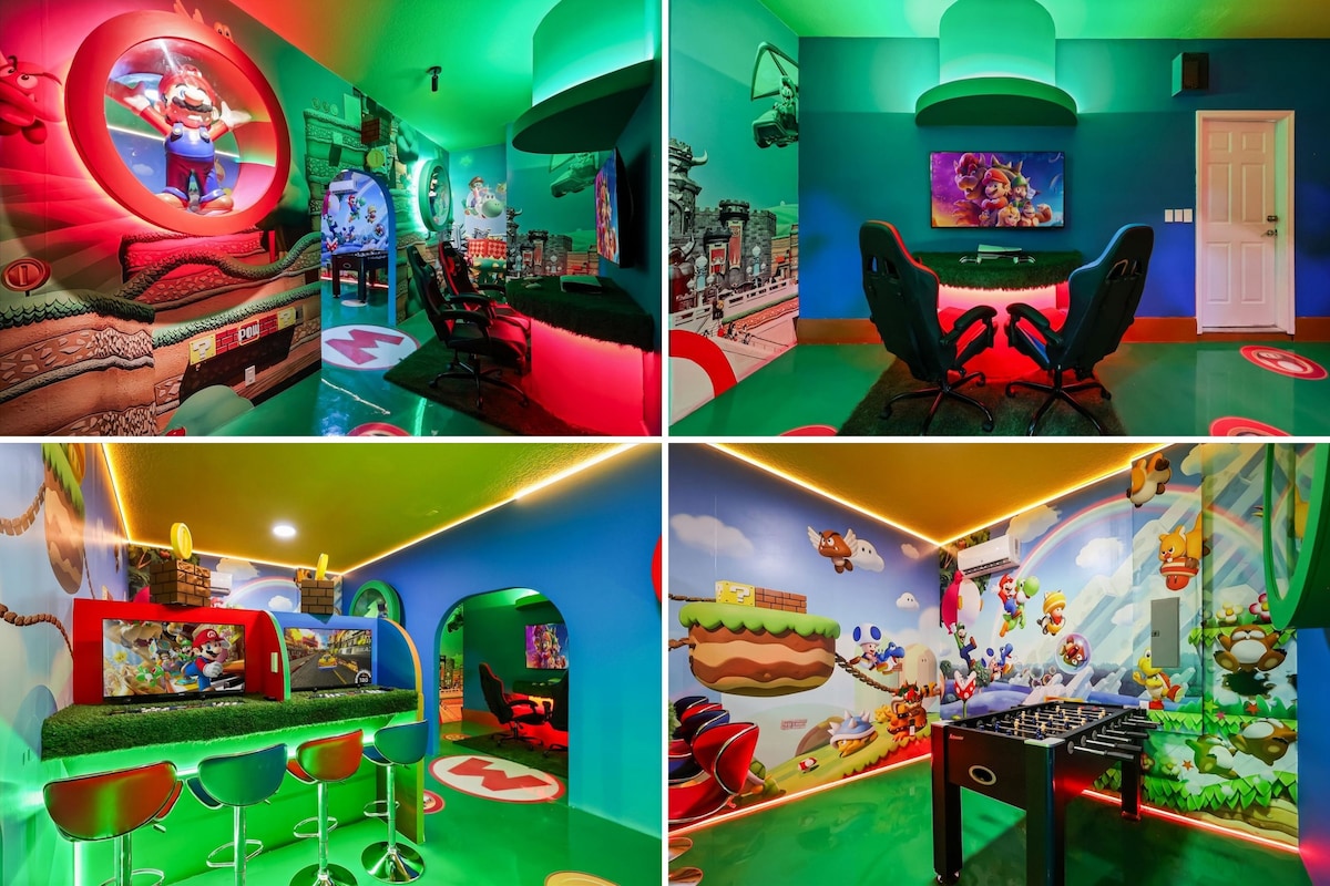 Welcome to your ultimate Nintendo getaway where every room is artfully and thoughtfully designed with a unique Super Mario theme. From custom decor to playful details, every corner is a tribute to the beloved world of Mario and friends. With classic Nintendo consoles at your fingertips, you’ll have everything you need to relive your favorite gaming memories in style. Unwind, play, and immerse yourself in the colorful world of Nintendo - TRUE SUPER MARIO ENTHUSIASTS ONLY :)