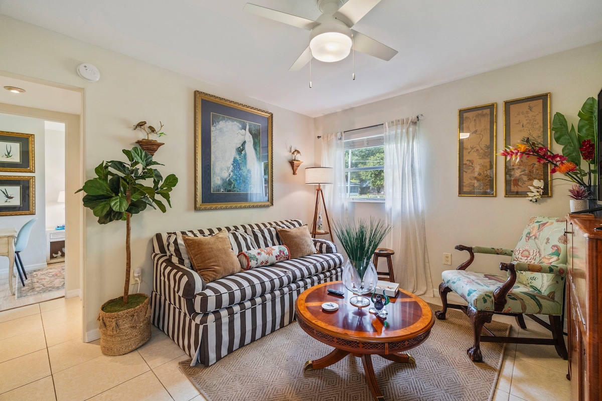 The beachy bungalow welcomes you to Florida. It's blue exterior will let you know you're in the right place. Your beachy suite is in the back of our home, it's old so the walls can be thin. This space has all you'll need for a weekend getaway including a mini fridge and microwave. It has the conveniences found in hotels with all the character of staying in a 1920s Floridian bungalow. There is a desk and chair for working remotely, a sofa for lounging, a king size bed, and a screen enclosed patio