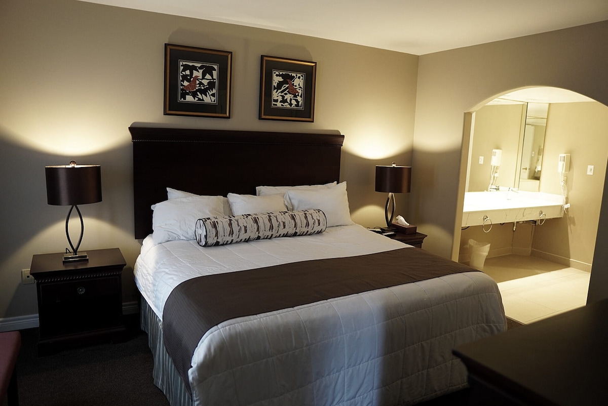 Forget your worries in this spacious and serene space at Highland Estates. A designer suite perfect for couples, equipped with a King Sized Bed, and a Jacuzzi for romantics. Fix your own meals in the kitchen with Microwave and Electric Stove. Access your favorite Streaming-TV accounts like Netflix, Prime, and Disney+ Take your sweetie to Vetta Spa, and lots of activities in the area; literally the Best Retreat in Oro-Medonte. Book with Us Today! Please note the dishwasher is out of order.