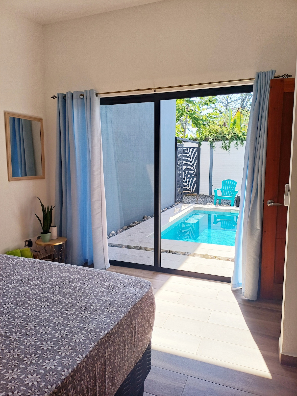 Cozy and modern accommodation with private pool in Bahia Ballena, Uvita. Bedroom with queen bed, living room with sofa bed, fully equipped kitchen and bathroom. High-speed Wi-Fi in the whole house. 20-minute walk to the famous Whale Tail Beach and 30 minutes to Playa Chaman. Supermarkets and restaurants within walking distance and 25 minutes to Uvita train station. Beginner surfboards available on request, cooler and beach towels provided.