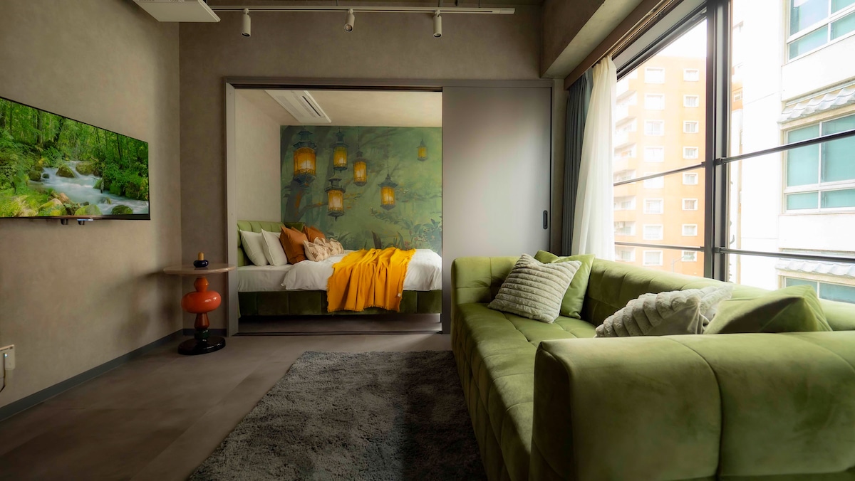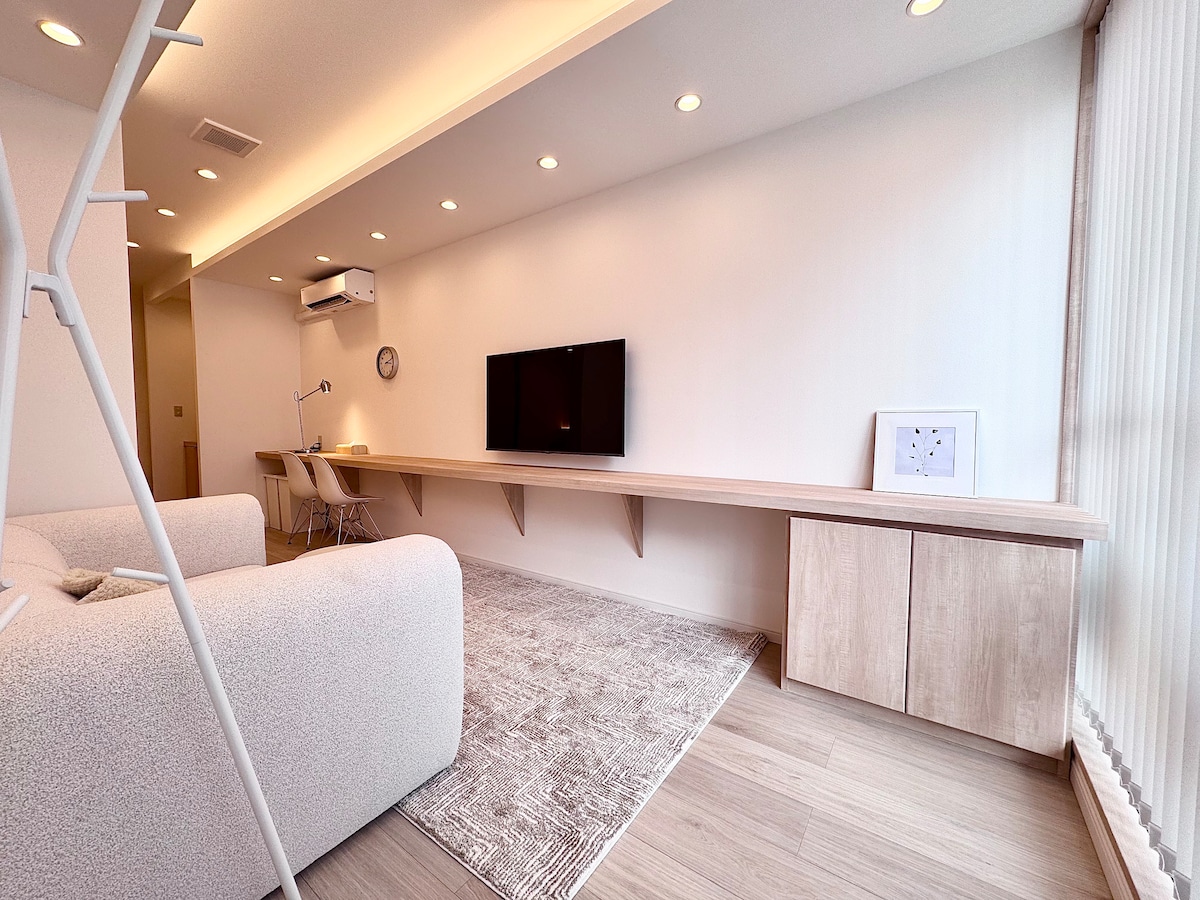 It's convenient for the whole family to go anywhere at this centrally-located place. Two king beds in the room, suitable for family and friends The floor is comfortable, and the space is private.Suitable for up to 5 people. The open kitchen is fully stocked with induction stove, pots and dishes, wanting to eat home-cooked meals, Japanese simple cooking is not a problem The bar is connected to the living and dining space, whether it's a morning coffee or a dinner, everything is just right. The sink is designed with a separate bathroom, so you can stay with a few people at your own pace Providing Bluetooth stereo, listening to music and taking a hot bath at night in Japan is the most relaxing moment of the trip. There is a projector in the room, so you can easily connect the commonly used digital streaming platform Washing machine, air purifier, iron and spacious closet, you need, we are all ready The space is just right for one person to work quietly at the bar or stay with friends or family for a few days Be at home, each comfortable.
