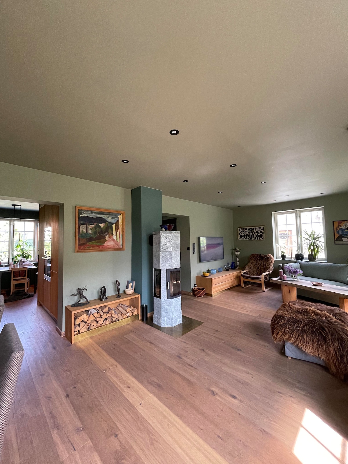 Sunny, architect-designed apartment, with evening sun until 9 pm. Idyllic fenced garden with dining area and sofa group. The apartment is fantastically located in the idyllic Ullevål garden city, near a large playground for children, 2 minutes from Damplass, good access to Sognsvann and Nordmarka, near the city center and part of a green recreational area – with tram, subway and bus nearby. The apartment is bright and stylish, completely renovated in 2019. 3 bedrooms with double beds + baby bed, 2 bathrooms, sauna.