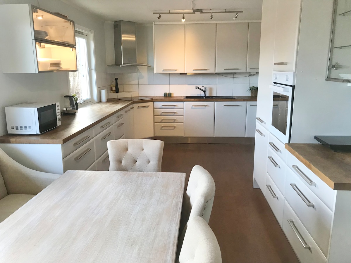 Relax and enjoy the view at this peaceful, elegant place! When you enter the door, you are in the kitchen and living room. With private balcony and fireplace. Dining table, sofa and TV. Upstairs you will find 3 bedrooms with queen size beds and 2 bathrooms. In the basement, there is a billiard table that is very popular. The apartment is suitable for up to 6 people who want to be close to hiking terrain and ski slopes. Nice starting point for trips in nature. At the same time only 30 minutes from Oslo city center with museums and restaurants.