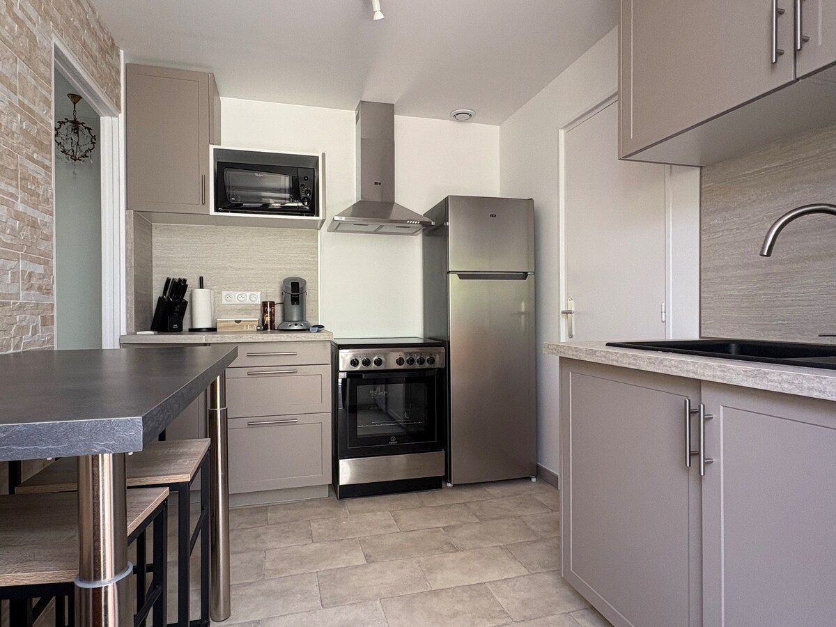 Our accommodation is located in a small quiet village. The accommodation is accessed by a small private courtyard with a small terrace and garden table, then by a staircase leading to the 1st floor. For parking, you can use the streets for free in front of the accommodation. no smoking Free Wi-Fi 140 × 190 bed bed sheets + bath towels provided shower gel induction cook-top combined microwave oven nespresso machine toaster kettle raclette machine