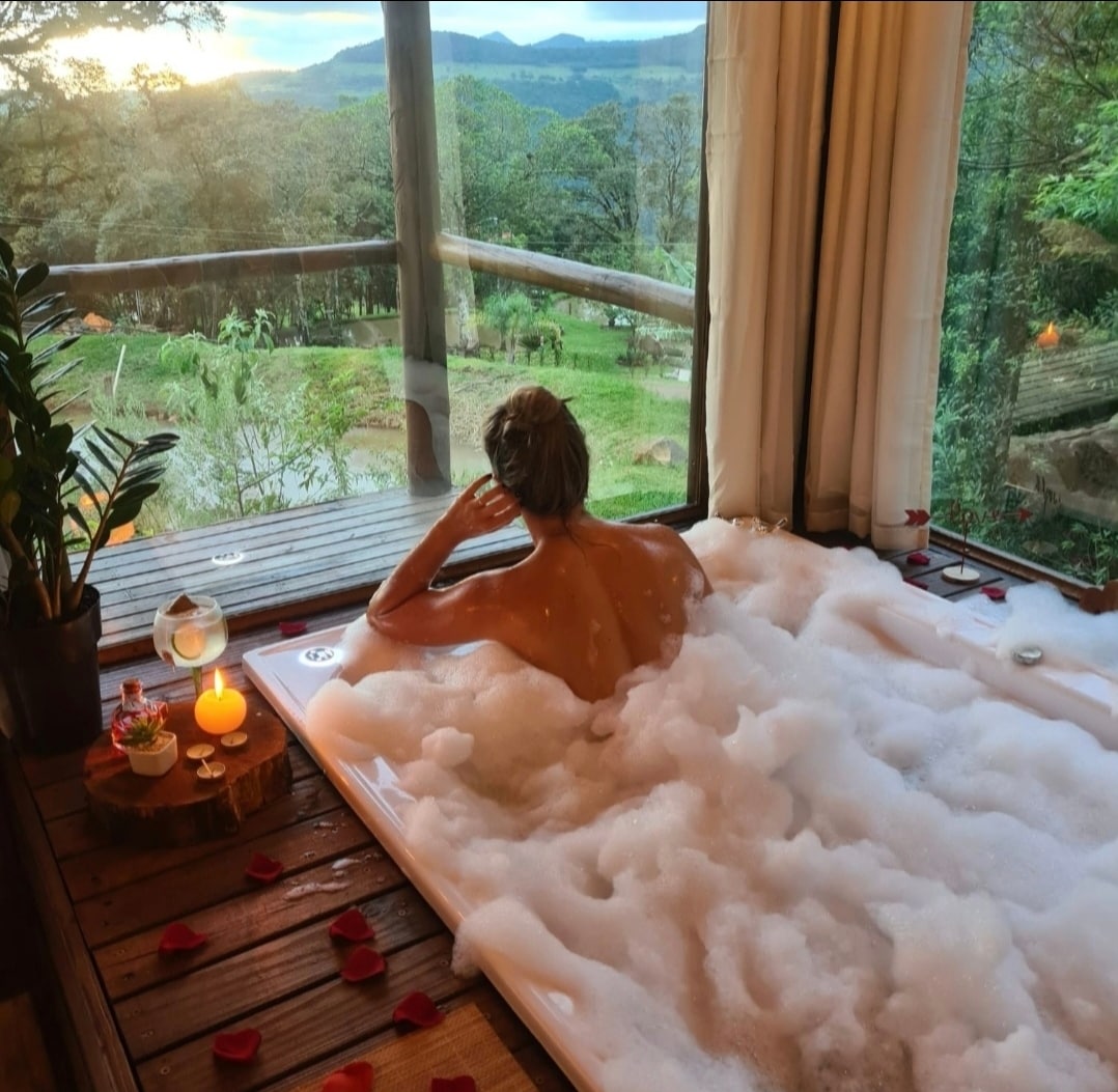 Relaxe neste espaço calmo e cheio de estilo, em nossa cabana você viverá momentos inesquecíveis, A banheira de hidromassagem tem uma vista exuberante para o Alto da Colina, sem contar que você poderá contemplar o pôr do sol mais lindo da região, em um momento de muita paz.