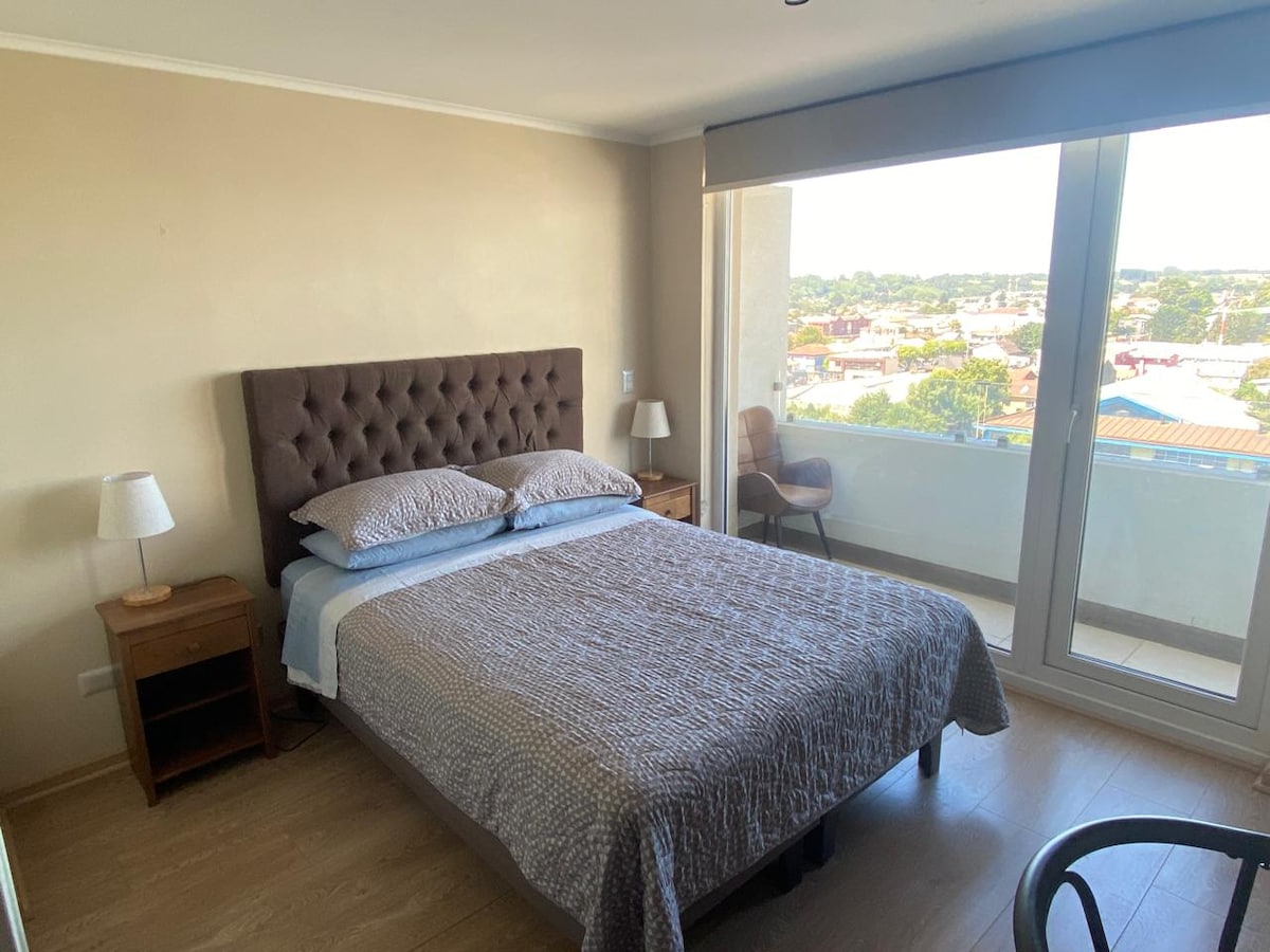 A warm and modern apartment, located in the heart of the best neighborhood in Osorno, safe, a short walk from downtown, with easy access to supermarkets, restaurants and shops. Fully equipped and good heating. Private parking. Guests have access to a shared pool, gym, and game room. The building has a 24-hour concierge ensuring a quiet and carefree stay. Self check-in! And surroundings with gardens and nature.