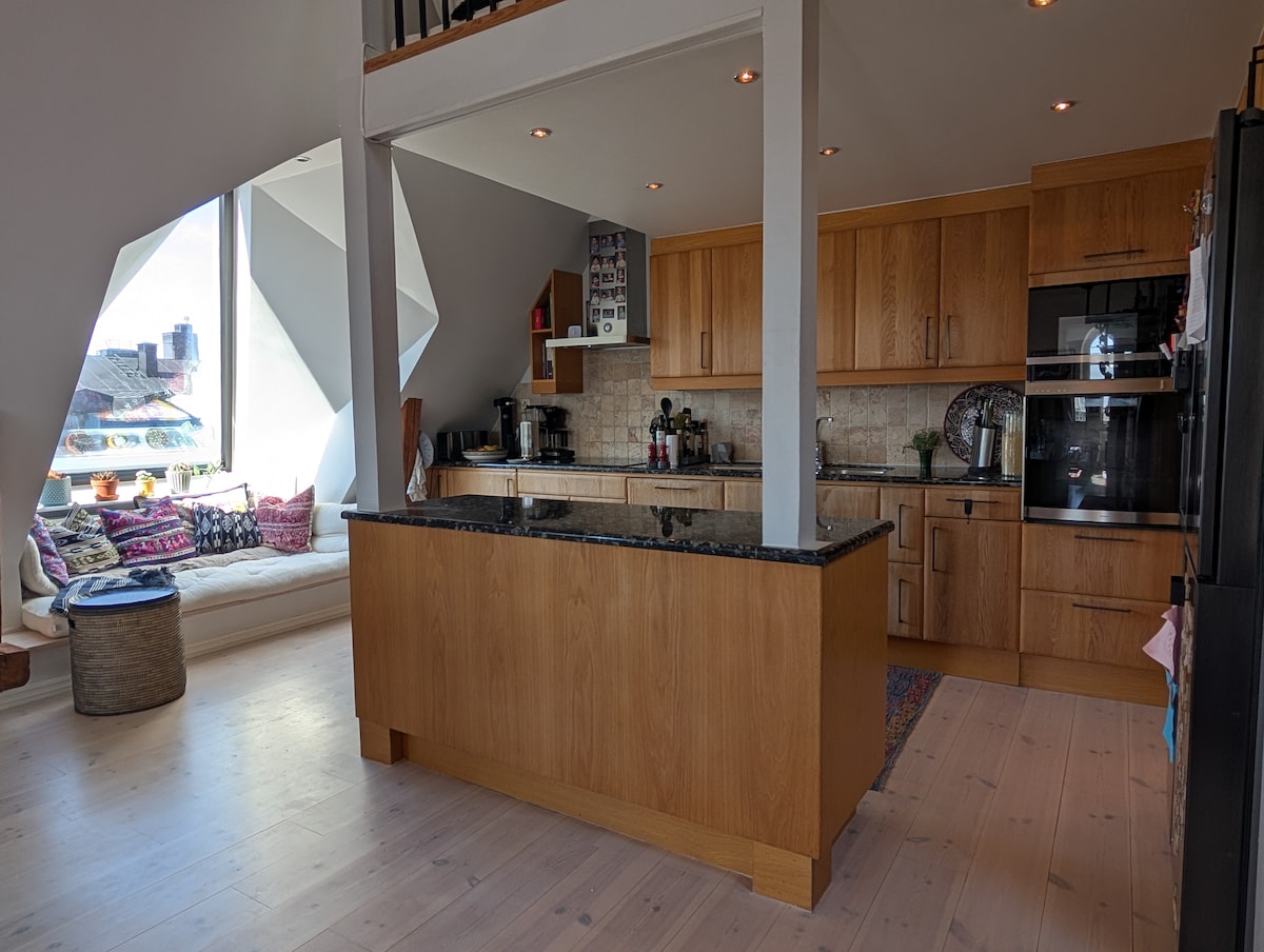 Modern, bright attic in 400 year old house